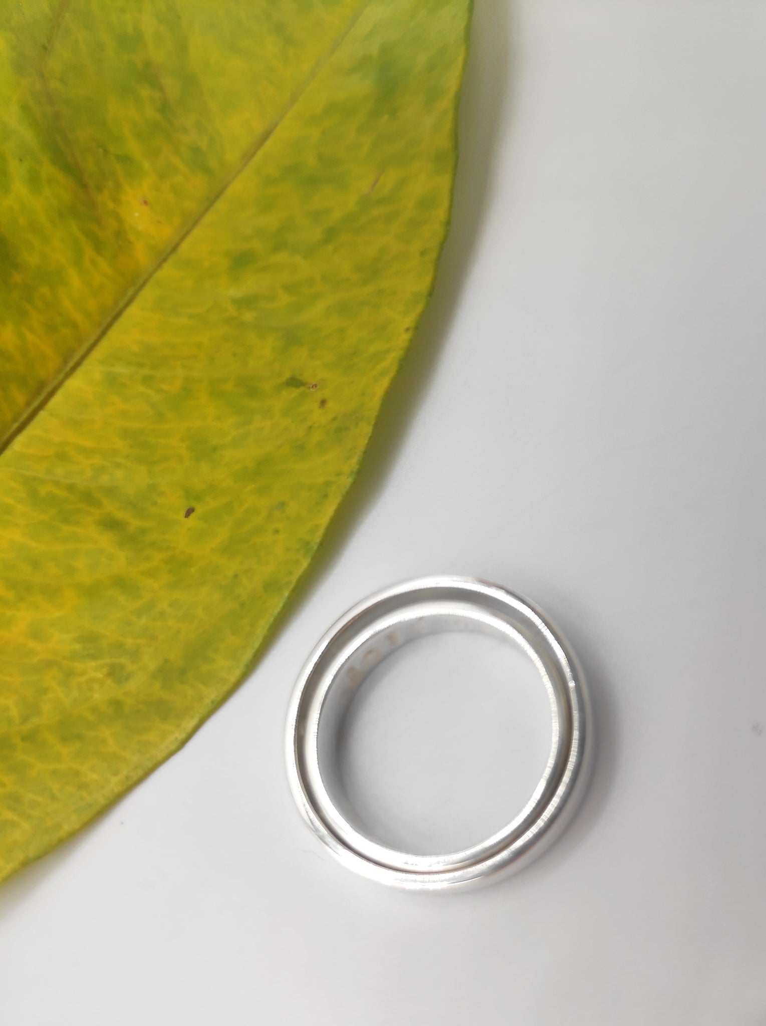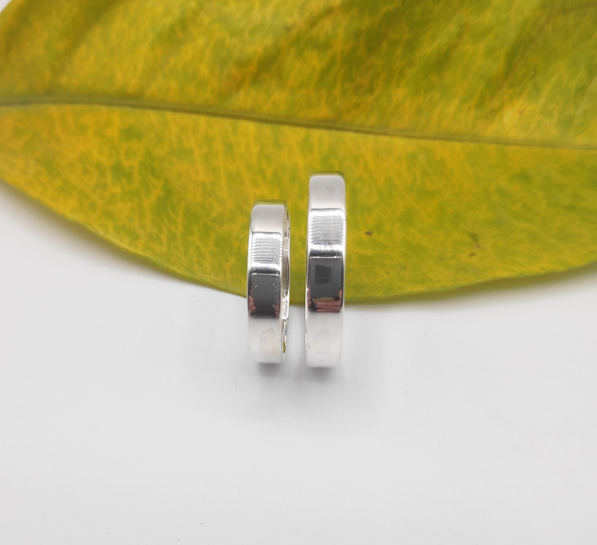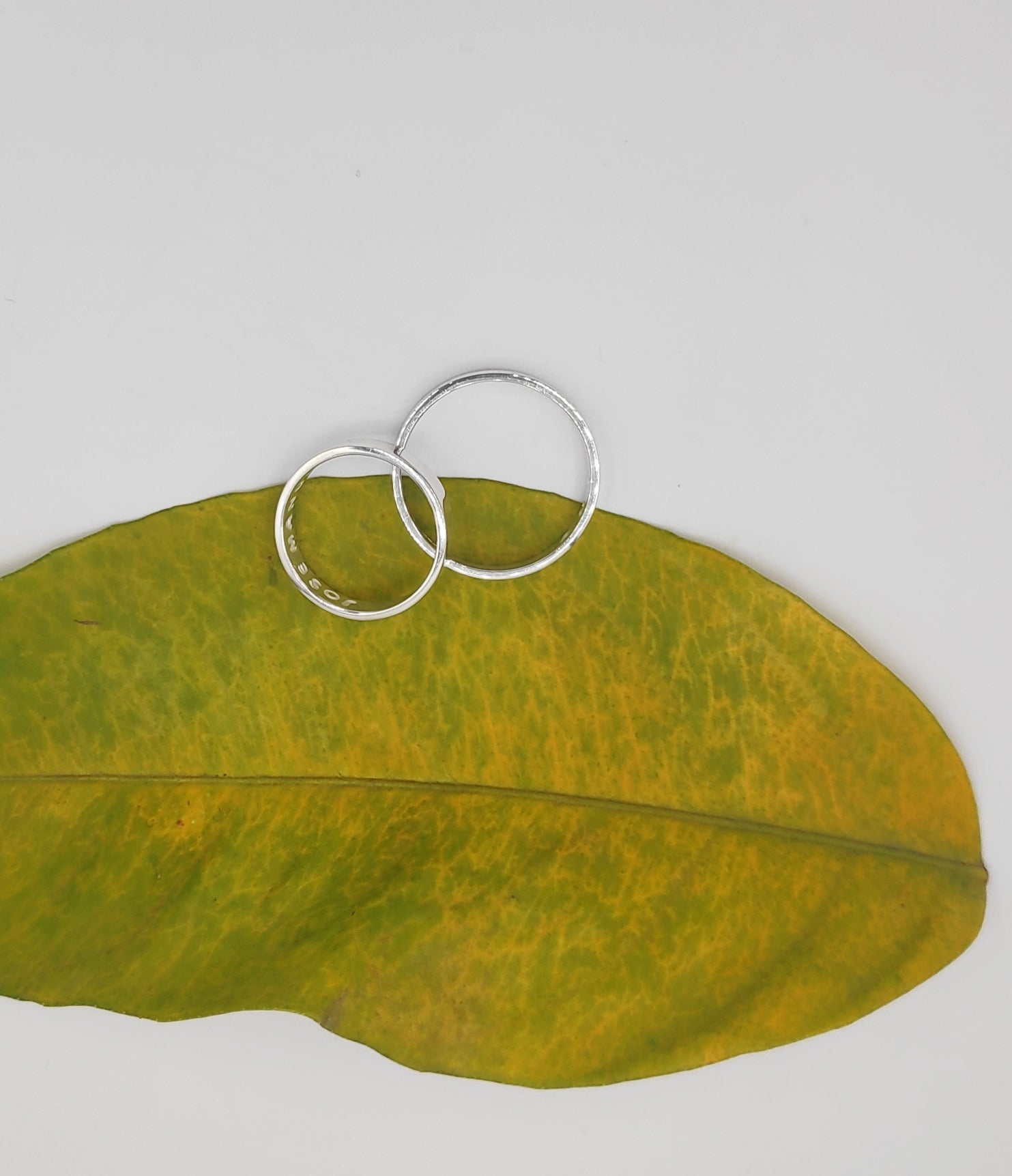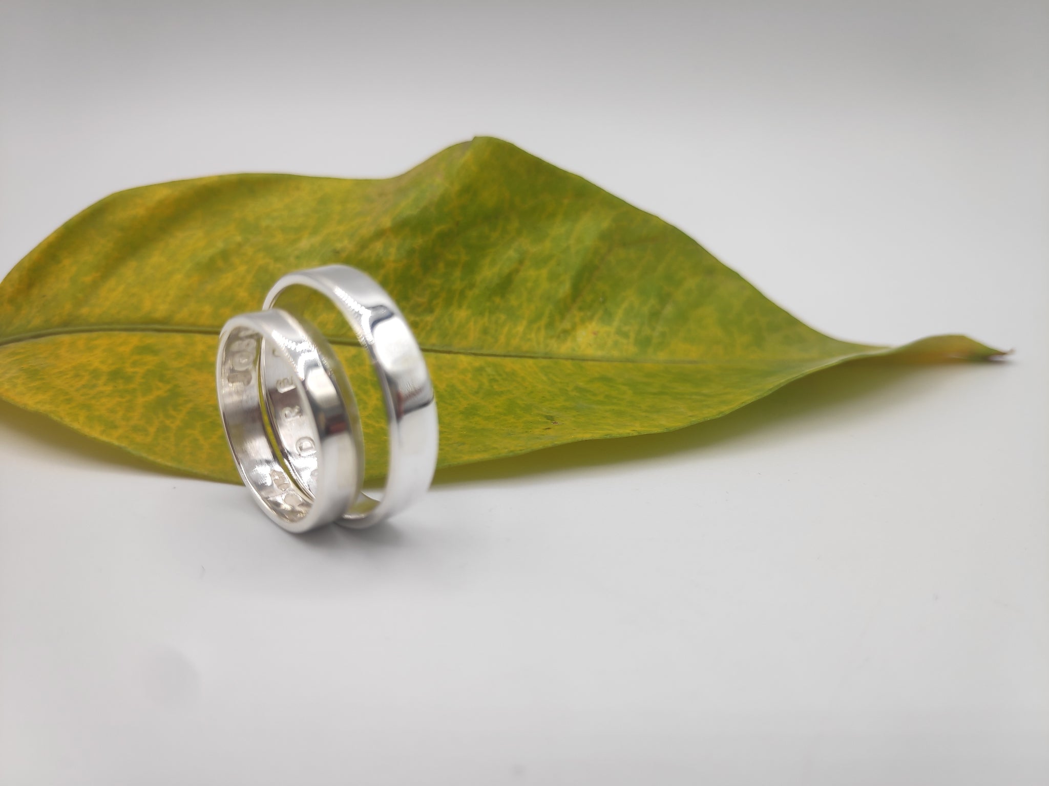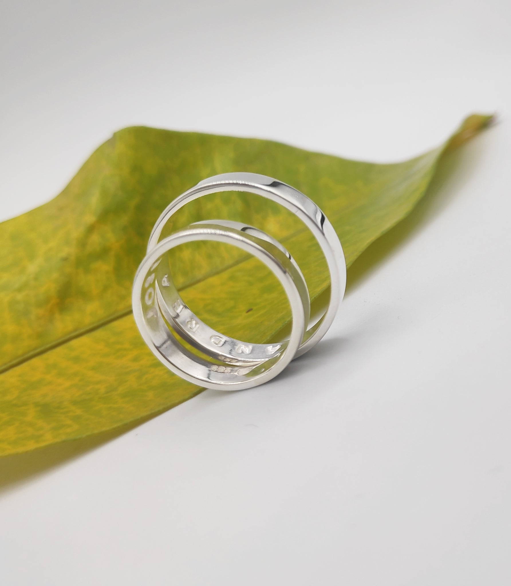 Alianzas, realizadas por encargo y a medida en plata de ley reciclada. Diseño sencillo y minimalista con acabado brillo, por dentro llevan una inscripción personalizada. Piezas únicas, diseño exclusivo. Joyería sostenible.