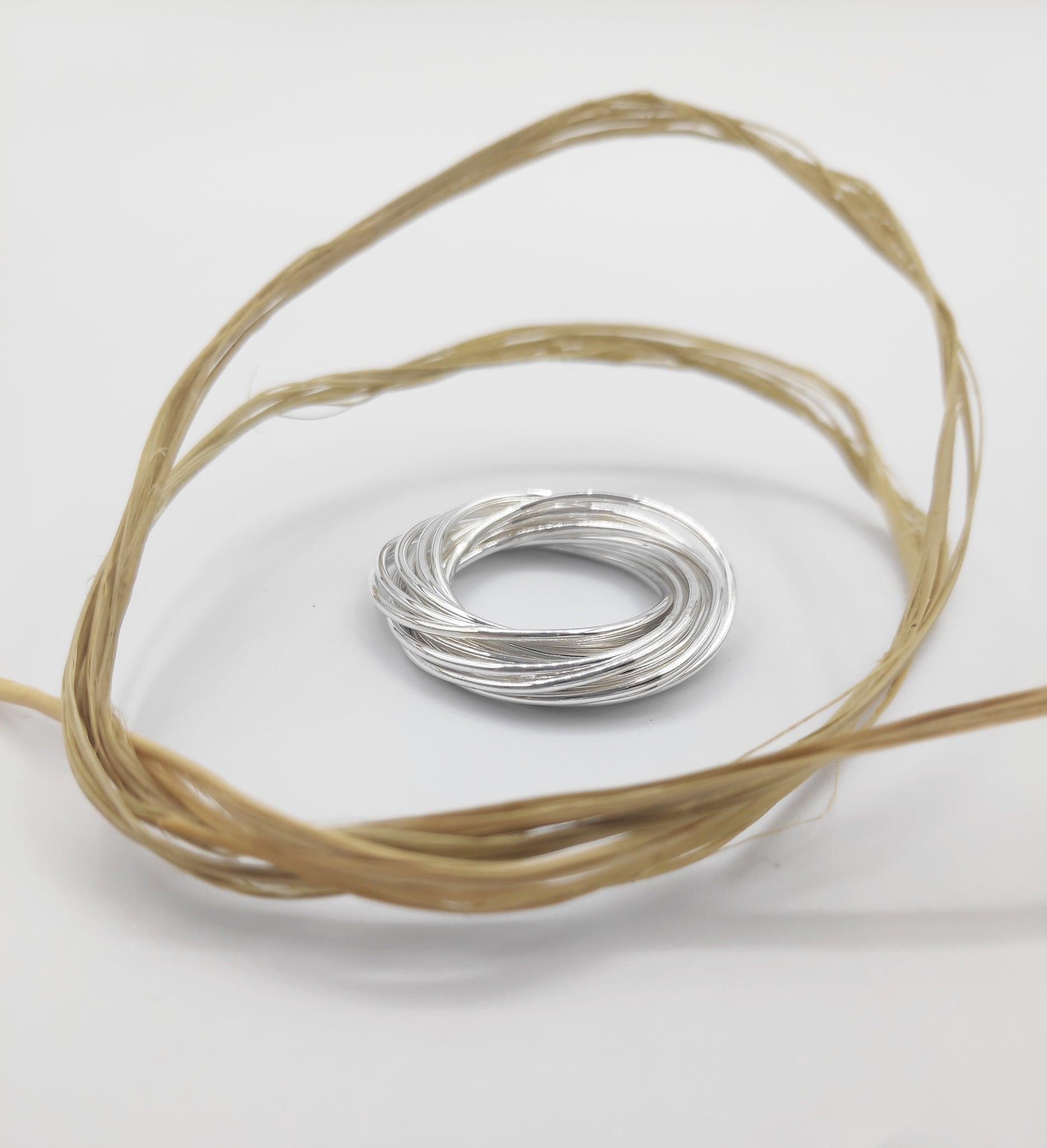 Anillo realizado por encargo en plata de ley reciclada, esta pieza está compuesta de 14 anillas entrelazadas entre si.